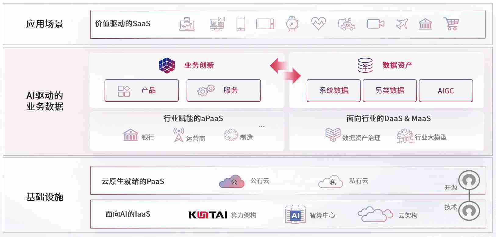 数字时代,,,,围绕企业数字化转型的关键要素,,,,恒行5数码开创性的提出数云融合战略和技术体系框架,,着力在云原生、、、、数字原生、、、、AI原生和信创产业上架构产品和服务能力,,,为处在不同数字化转型阶段的快消零售、、、汽车、、、、金融、、医疗、、、政企、、、教育、、运营商等行业客户提供泛在的敏捷IT能力和融合的数据驱动能力,,,构建跨界融合创新的数字业务场景和新业务模式,,,助力企业级客户建立面向未来的核心能力和竞争优势,,,全面推动社会的数字化、、、、智能化转型升级。。。。