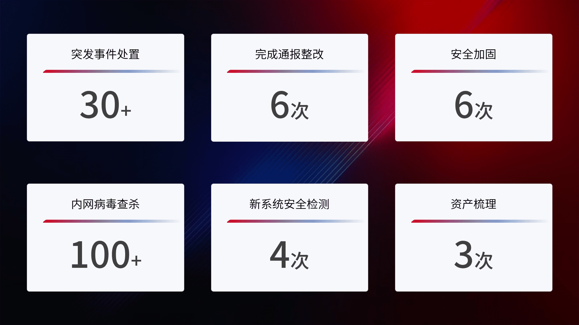 网络安全加固与风险管理:通过技术加固手段,,,如加强区域隔离,,缩减攻击内网横向移动的范围;优化现有网络安全管理制度,,,降低网络威胁暴露面,,减少被黑客攻击的可能性。。。。